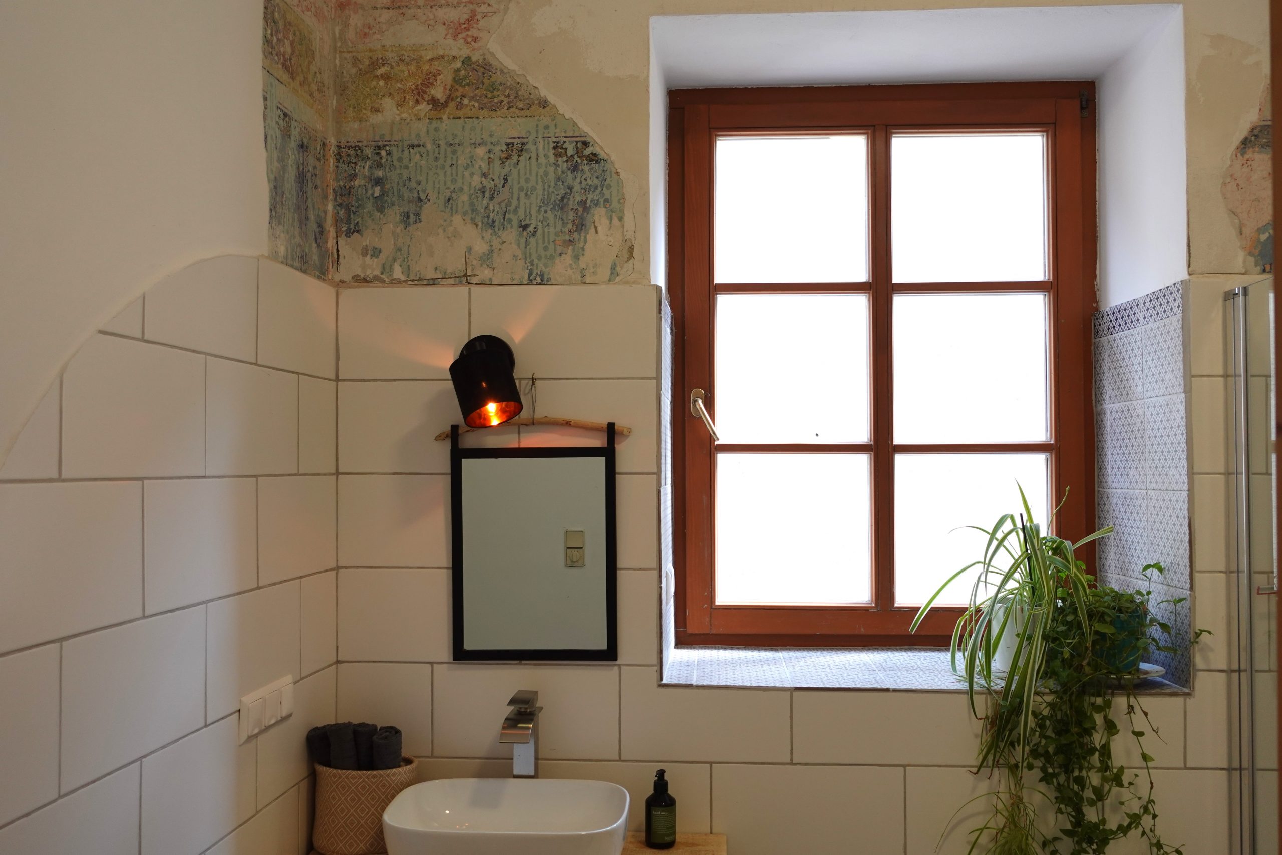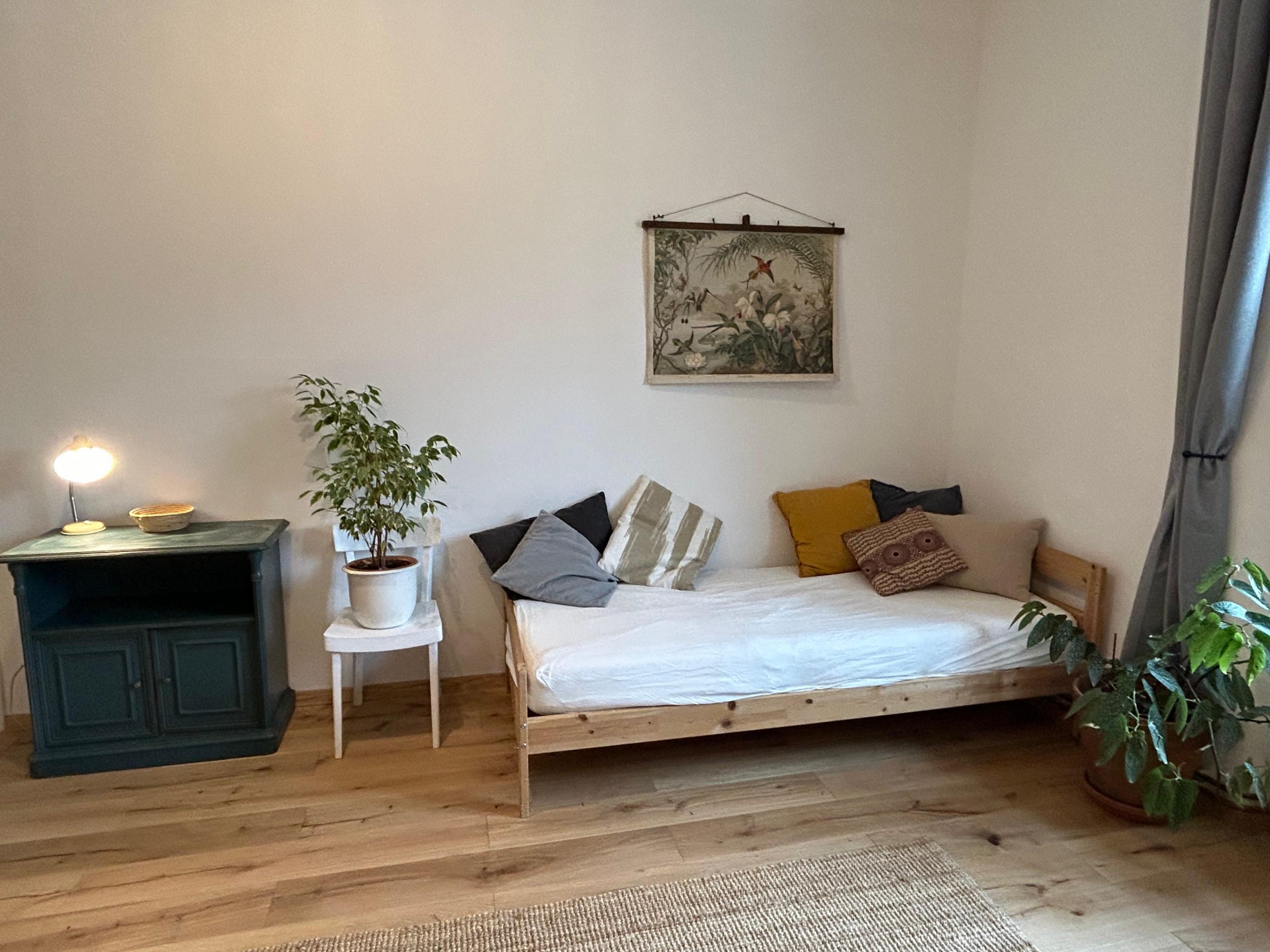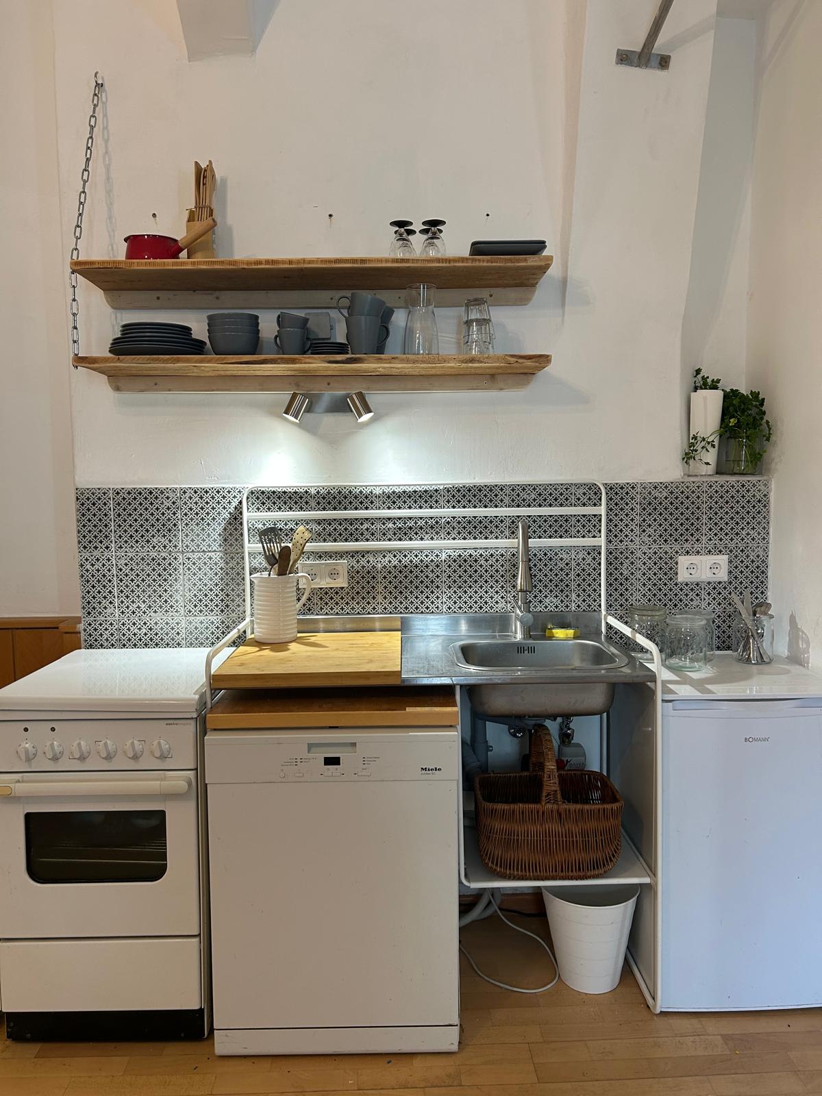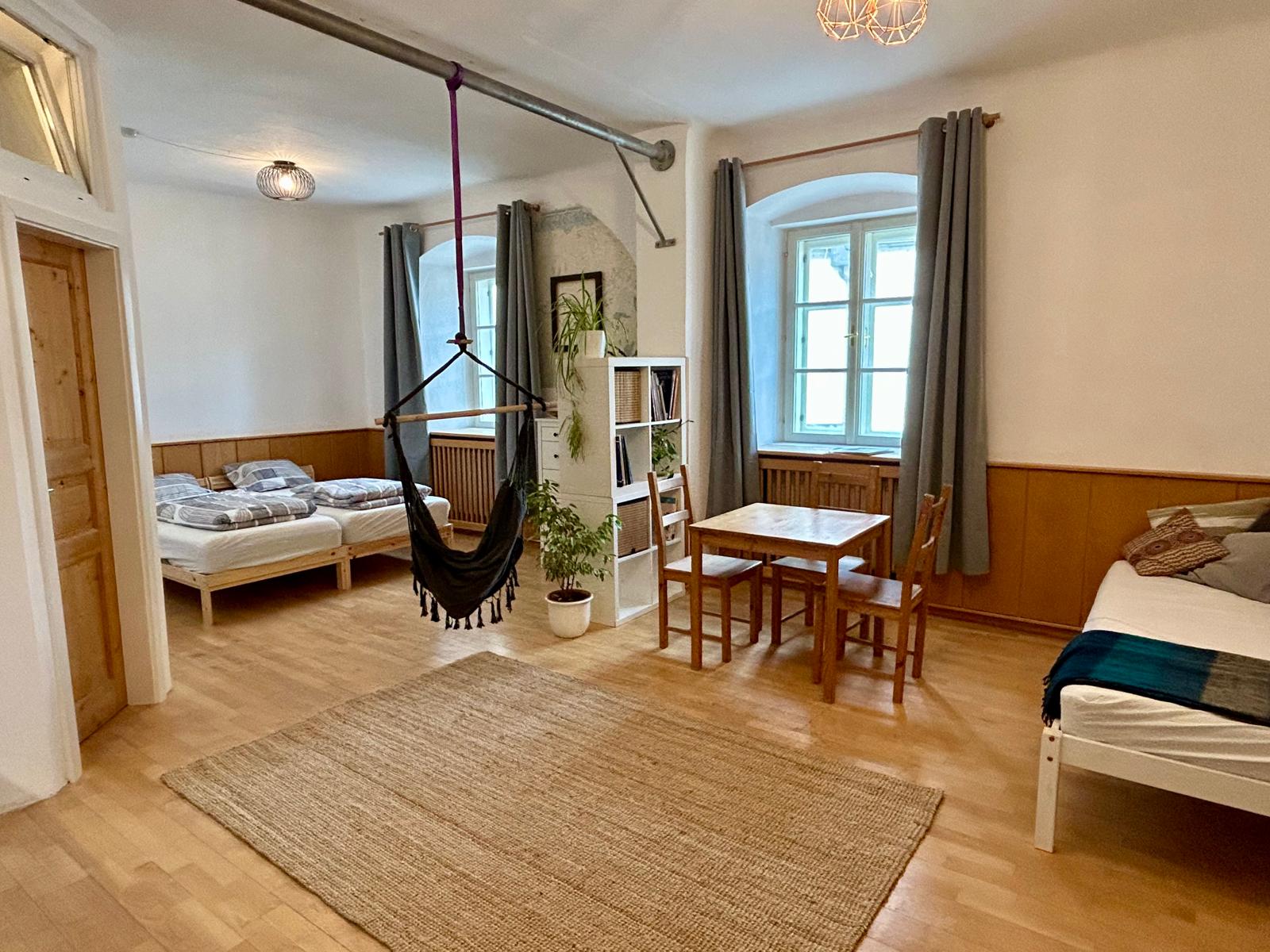 This cozy apartment features everything you need in one room, along with a spacious separate bathroom. Enjoy a comfortable living area with a fully equipped kitchen, a sleeping corner, and a small library. It is ideal for cyclists or hikers looking for an extended stay. Located in the heart of Rossatz, we are conveniently situated right next to the church.