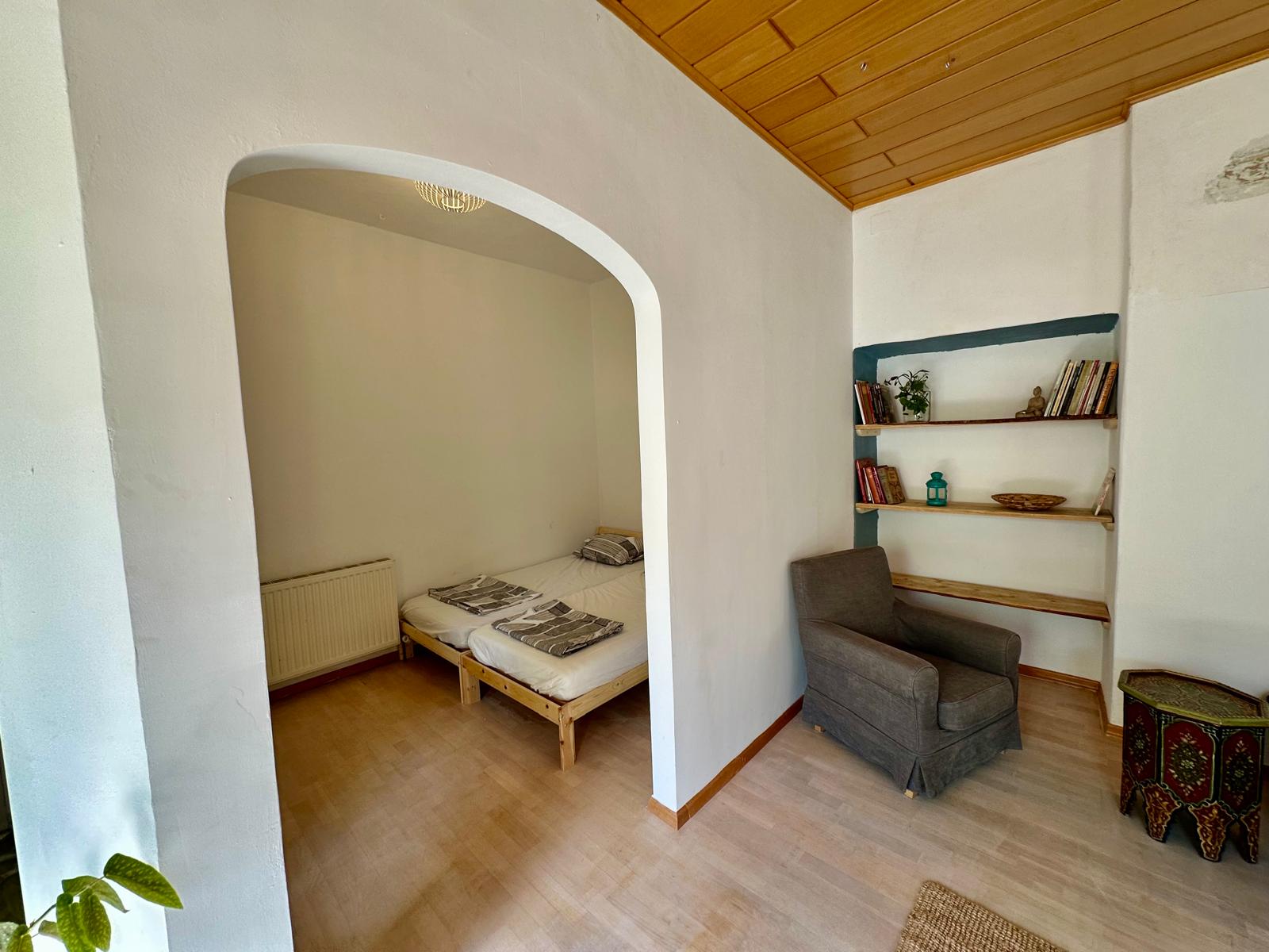 This beautiful tiny apartment is bright and inviting, located right next to our delightful garden, which features an outdoor dining area. The apartment includes a cozy corner with two beds and a sofa that converts into an additional bed. It boasts a charming kitchen equipped with all necessary amenities and a dining area where you can enjoy meals. You are sure to have a wonderful stay.